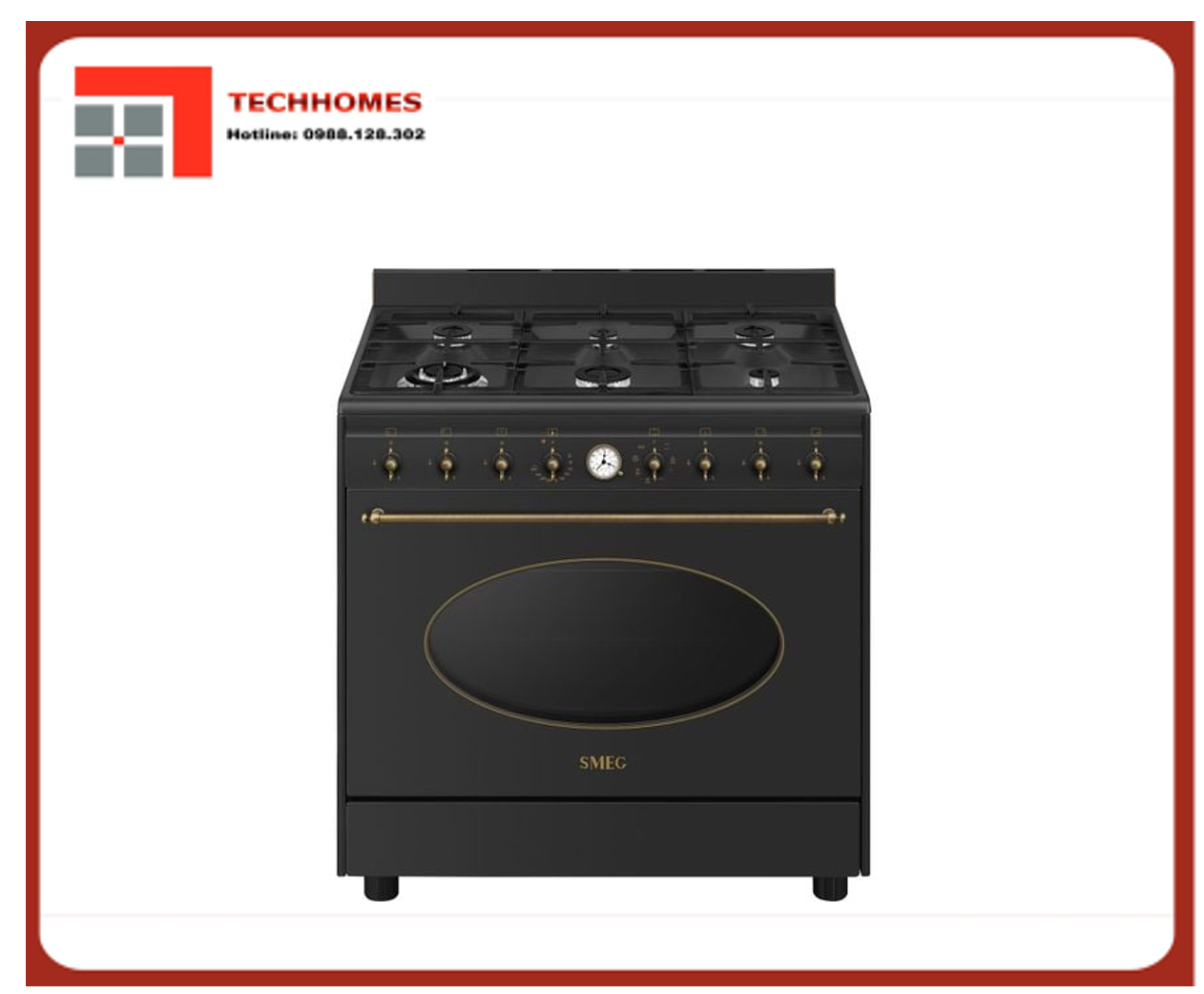 BẾP NẤU KÈM LÒ NƯỚNG CÓ MẶT BẾP GAS SMEG COLONIALE, 90CM