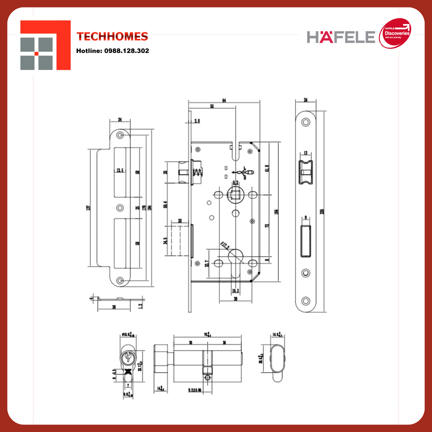 THÔNG SỐ KỸ THUẬT CỦA BỘ KHÓA CỬA HAFELE DIY SET D 499.63.624