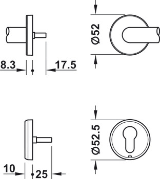 - Phần lỗ ruột khóa tay nắm gạt dạng G, inox đen