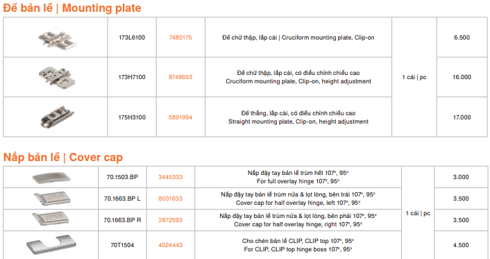 Bảng giá mới nhất phụ kiện Blum năm 2023 - 2024