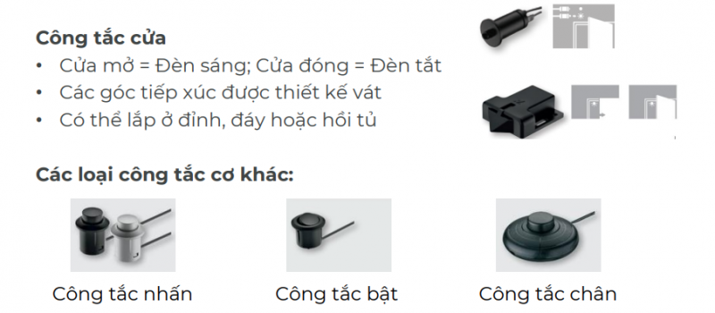 Công tắc cơ Hafele đóng mở, bật mở hoặc mở theo cánh tủ...