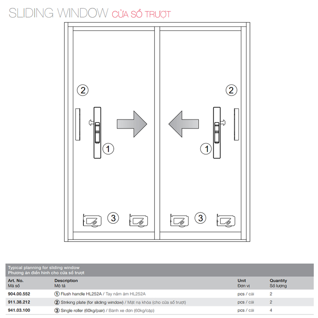 + Cửa trượt cửa sổ nhôm kính hafele dùng cho cửa sổ trượt 2 cánh