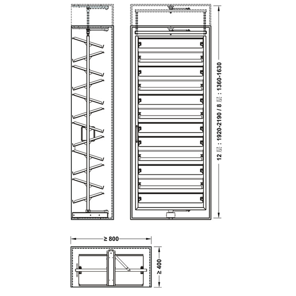 ĐẶC TÍNH CỦA GIÁ GIÀY XOAY HAFELE 12 TẦNG 807.97.481 CAO 1920-2210MM