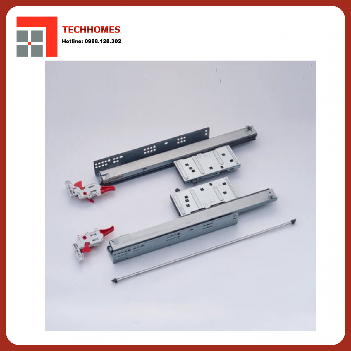 Ray trượt ngăn kéo là phụ kiện không thể thiếu. Việc sử dụng các loại ray trượt bi tiêu chuẩn khiến ngăn kéo dễ bị lắc, khó chịu tải nặng và thiếu cơ chế giảm chấn.