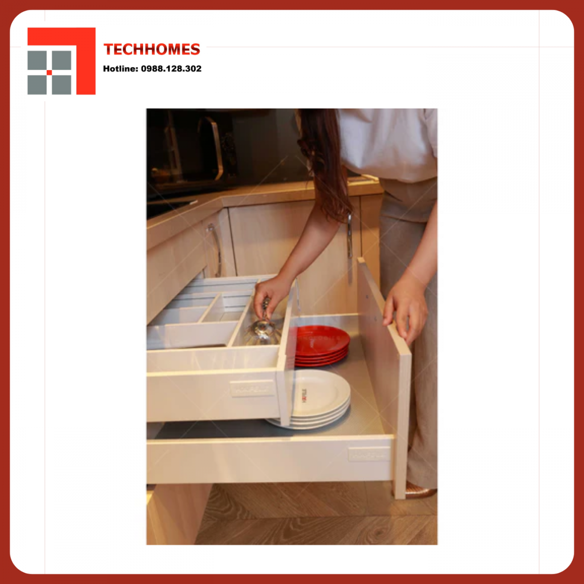 - Ưu điểm: Độ bền vượt trội, hoạt động êm ái, đảm bảo tuổi thọ bằng với vòng đời của tủ bếp (khoảng 20 năm). Việc đầu tư này chỉ tốn thêm một khoản nhỏ, nhưng giá trị sử dụng lại rất lớn.