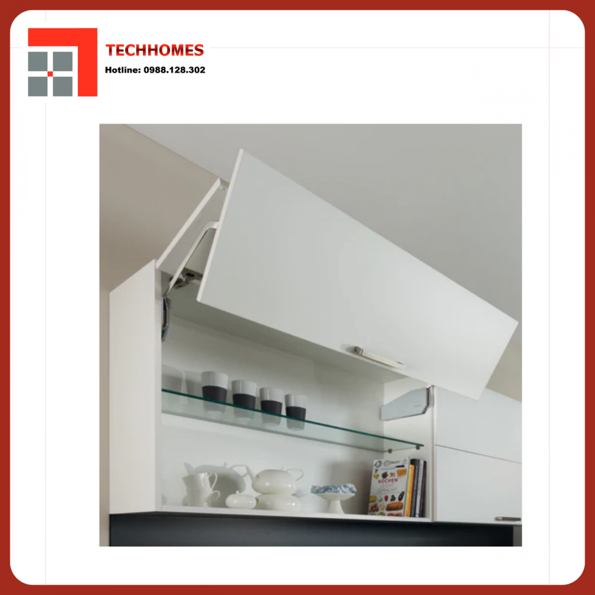 - Ưu điểm: Hệ thống tay nâng cao cấp giúp cửa tủ mở lên và dừng lại ở đa điểm theo mong muốn của người dùng, không bị bật thẳng lên nóc tủ như piston hơi. Sự linh hoạt này mang lại trải nghiệm tiện nghi, an toàn và đảm bảo độ bền tuyệt đối trong suốt thời gian sử dụng.