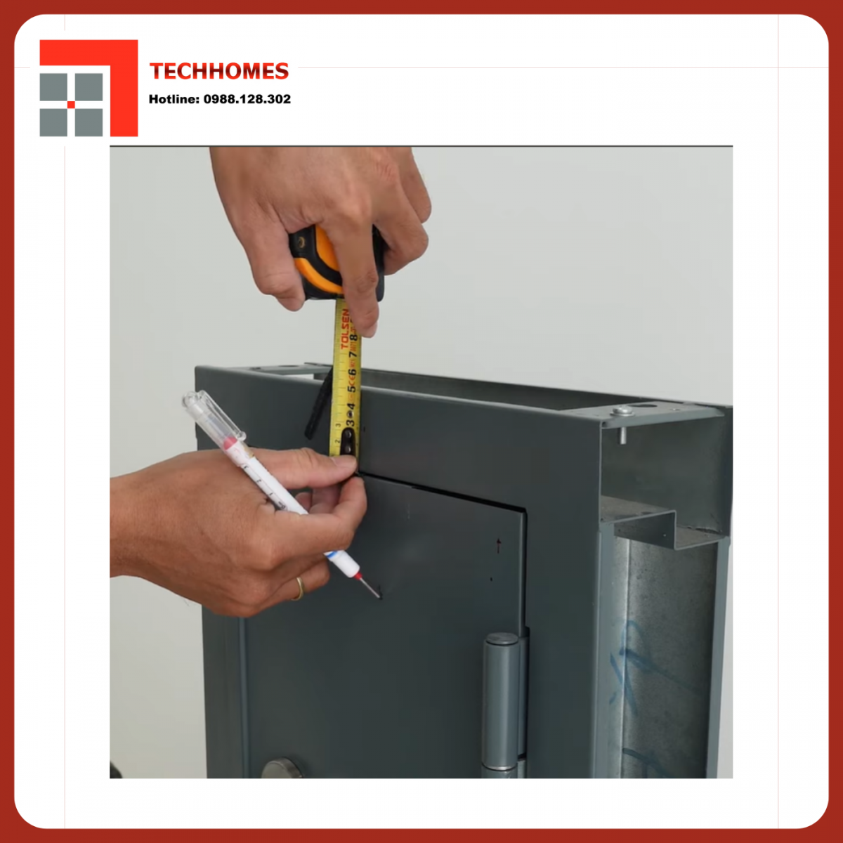 Đo khoảng cách từ tim bản lề và chiều cao từ đáy khung xuống.