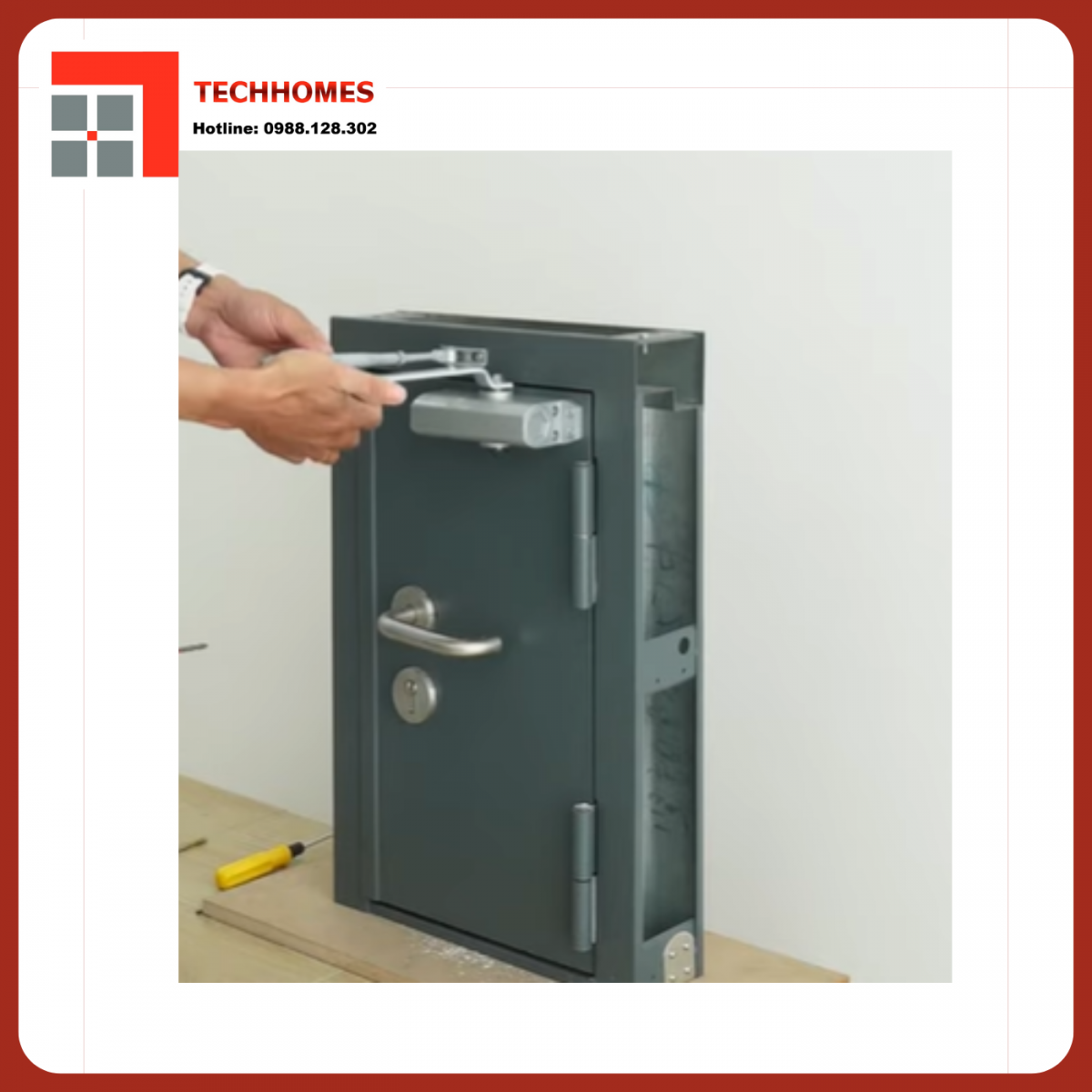Việc lắp đặt tay co thủy lực (cùi chỏ hơi) lên cửa thép chống cháy thường gây khó khăn cho nhiều thợ vì thành cửa rất mỏng (chỉ khoảng 0.8mm - 1.3mm), dễ dẫn đến tình trạng tuôn ren hoặc lỏng vít sau một thời gian sử dụng. Bài viết này sẽ hướng dẫn bạn quy trình lắp đặt chuyên nghiệp, bền bỉ theo tiêu chuẩn nhà sản xuất.