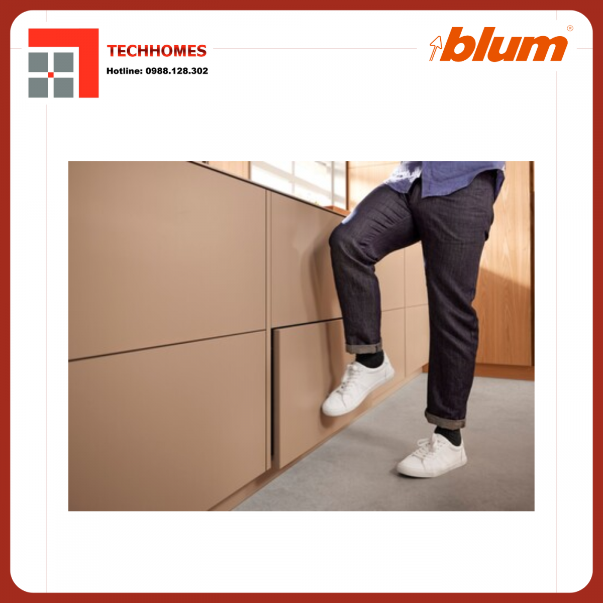 Tối ưu hóa cho tủ bếp không tay nắm, tăng tính thẩm mỹ, dễ dàng mở ngăn kéo khi tay bận (chỉ cần dùng đầu gối hoặc hông chạm nhẹ).