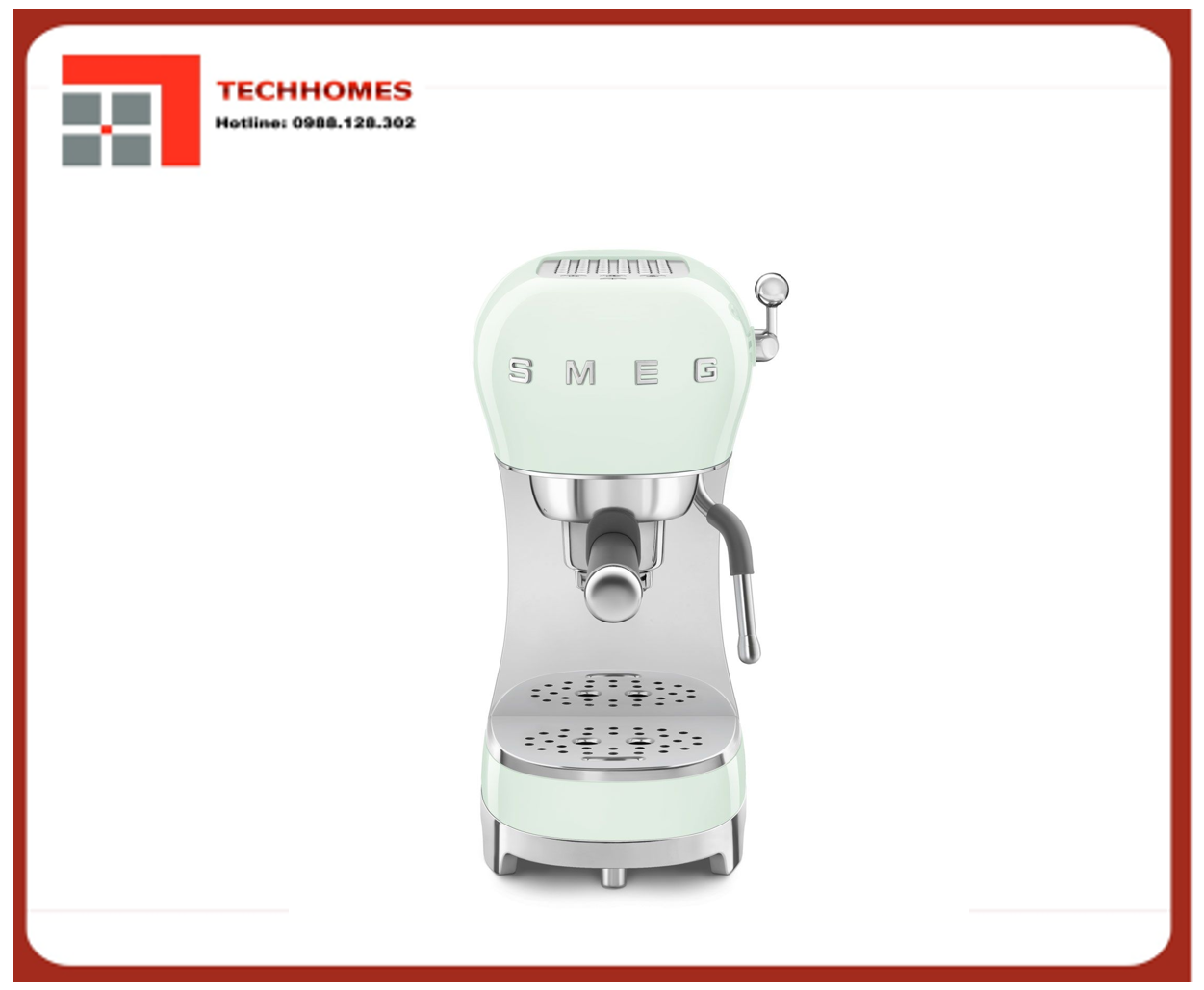 Máy pha cà phê Smeg 50's Style ECF02PG, vòi đánh sữa tích hợp, màu xanh lá pastel