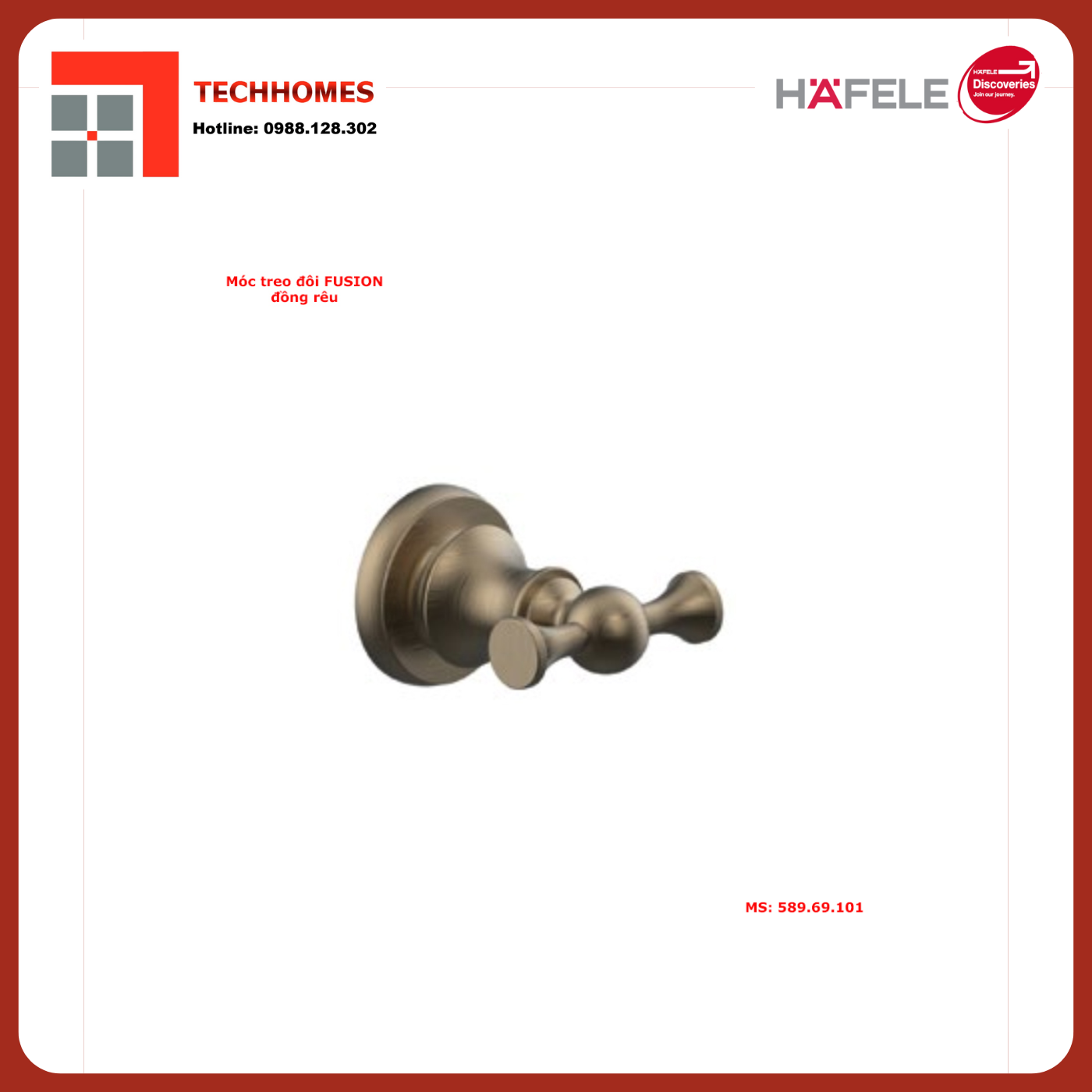 THÔNG SỐ KỸ THUẬT CỦA MÓC TREO ĐÔI HAFELE FUSION BZ 589.69.101 ĐỒNG RÊU