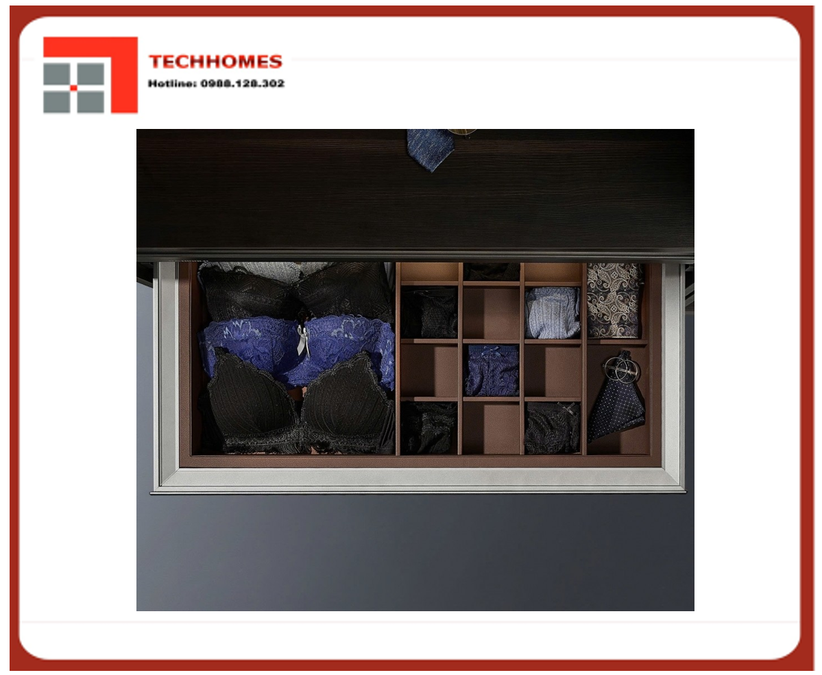 – Ngăn kéo đựng đồ nội y Series A Xám cao cấp được làm từ hợp kim nhôm phối da nâu cao cấp, sang trọng, chống trầy xước, dễ dàng vệ sinh, đảm bảo độ bền lâu dài.